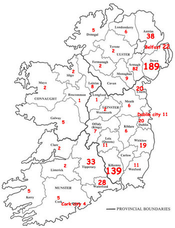 First we consider where the surname Grant is to be found. Two good sources that give the whole of Ireland are Griffiths (largely taken between 1848 and 1864) and the 2008 telephone books