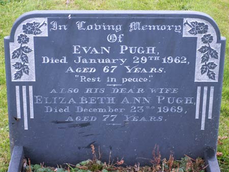 On leaving school Emrys Pugh believes that his mother, Cissie Evans, worked as a kitchen maid to the vicar of Pentir (about 1 mile from Rhiwlas), then she was employed at a vicarage at Llandudno and later by a Rev Roberts (Cissie's sister Jane married a Simeon Roberts, but we have no idea if he was a relation of the Rev Roberts) at the vicarage at Tal-y-Llyn. which is the next village to where Evan Pugh ( whom she later married) lived with his family. It is only a two and a half mile walk from Tal-y-Llyn to Abergynolwyn. I presume that is how the two of them met. At some point Chris Sutton understands that Evan Pugh refused to let Cissie go to work for Mr Roberts. I am not sure if that was after they married, or when she fell pregnant and he didn't want her going back there and shaming him in a neighbourhood near where his parents still lived.