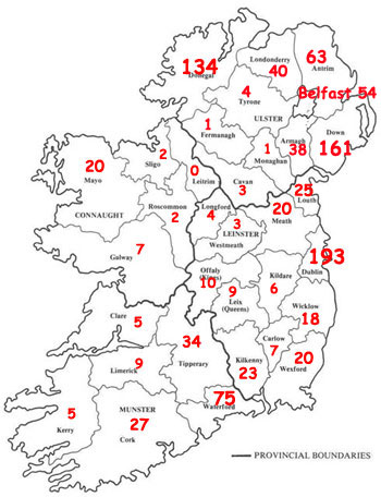 First we consider where the surname Grant is to be found. Two good sources that give the whole of Ireland are Griffiths (largely taken between 1848 and 1864) and the 2008 telephone books