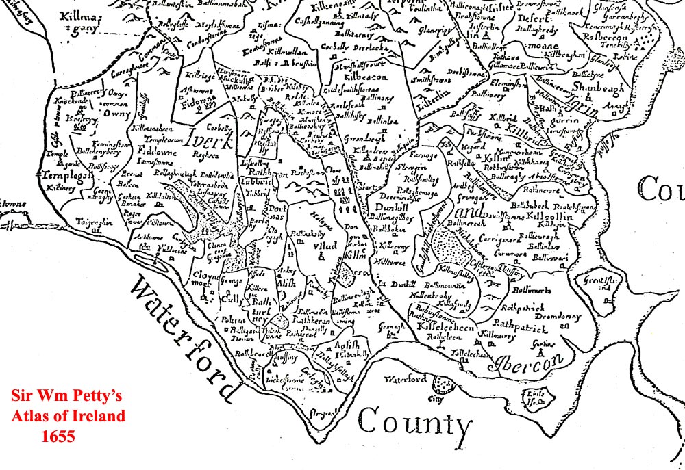 The Aglish branch appear to be smaller Catholic landowners, probably an offshoot of the Curlody branch. Richard is listed as Irish Papist in confiscations. Records show Richard & John still owning 15 acres in 1664 in Portnahully and a Walter at Rathpatrick, Ida in 1664. So they probably managed to remain in the area. Many Grants still lived here over the next centuries.