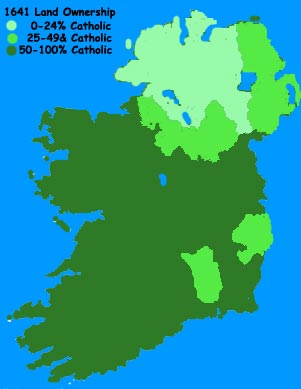 James I became king in 1603, and it was he, with the flight of the Earls of Tyrone and Tyrconnel into exile in 1607, who embarked on the "final solution" to the Irish problem - with the Plantation of Ulster. The confiscation of the Earls lands in Ulster meant that it could be divided into small parcels and planted with Protestant settlers, mainly lowland Scots. The thinking was that if large land grants were made then they would quickly be sold, but small landowners would be more committed to stay and work the land themselves. The policy was so successful that the demography of Ireland today stills shows these Protestant settlers in Ulster.