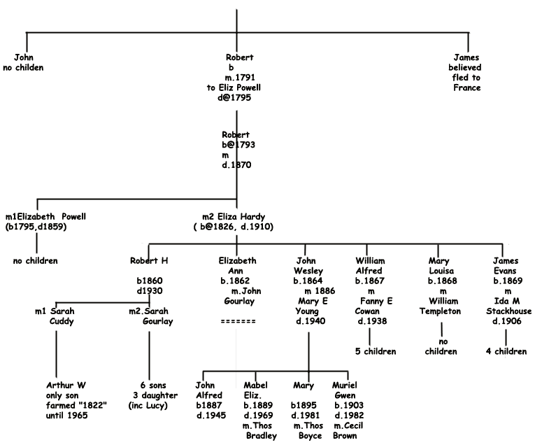 Robert Grant junior, (b 1793 - d 17 Aug. 1870), married Elizabeth Powell (b 1795/96 - d 12 Feb. 1859) in 1818, they had NO Children. The story is a little complicated as both father and son, both named Robert Grant, both married an Elizabeth Powell. This marriage of Robert junior was to his cousin Elizabeth Powell. She was the daughter of Joseph Powell & Frances Robert's (Joseph Powell being the brother of Robert's mother Elizabeth Powell