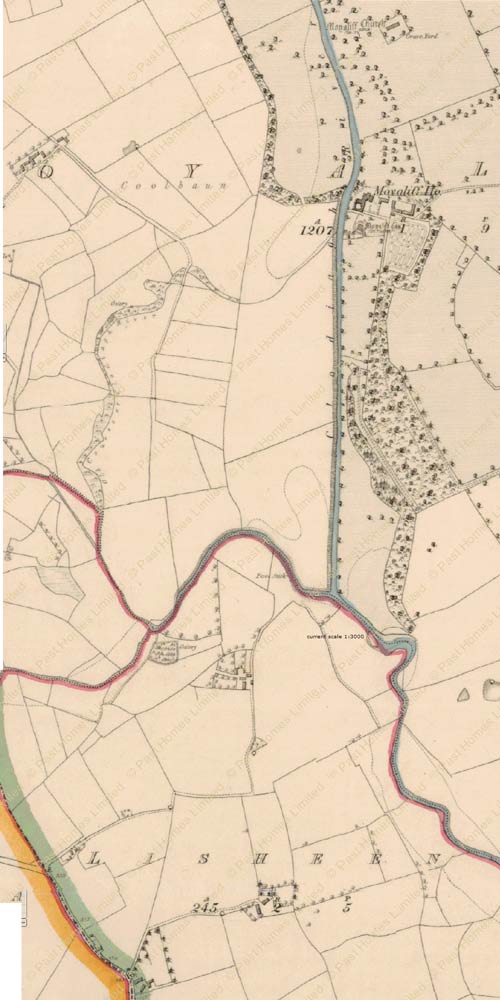 The large scale map of Moyaliff House and Lisheen shows Lisheen is just south of Moyaliff