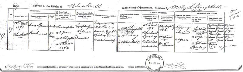 The Grant name carried on with the marriages of James Grant and Daniel Grant, both sons of Christopher Grant and Catherine Davoren had sons. Thomas William Grant, son of James Grant and Catherine Quinlan. I understand there there are still Grant descendents of this line in Australia today