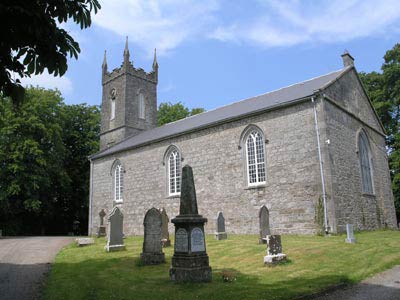 In 1792 the rectory and vicarage were united to Kilmurray, and these were afterwards episcopally united to the rectory of Kilcommon. It is related there were only ten houses in Shinrone in 1640. In 1828, the excitement over the Roman Catholic Emancipation Act was intense all over Ireland. A great meeting was held in Roscrea, when the men paraded in green ribbons, determined on a similar demonstration at Shinrone, at that time one of the few Protestant towns in the Midlands. When the inhabitants heard that thousands would march on their town from Galway, Tipperary, Kilkenny, and Queen’s County, they fortified themselves. The doorways and lower windows were barricaded. Sashes were removed from the upper windows, converting them into embrasures for musketry; and on the other hand the “Green Boys” swore, that march through the town they would, let the hazard be what it might.