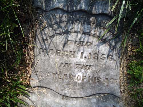 - (lot 22, space 7) Sarah J Blong b ? 20 Jan ? in Pa, died 5 April 1906, parents ? & Mary Jane Williams