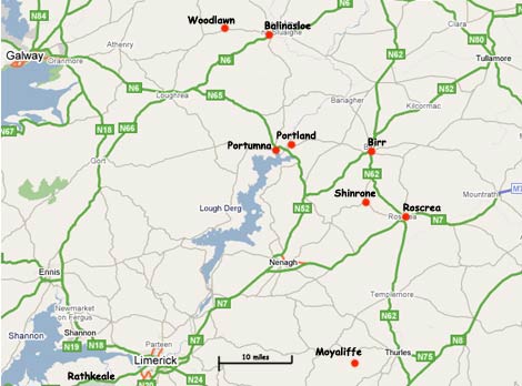 The connection I feel is the Trench family for whom the Grants worked in Shinrone, and who had scattered property in the area. The famine struck hard over the period 1845 to 1849, and this will have caused Stephen Grant to move. The Trenches, as well as Woodlawn, Kilconnel, also owned Garbally, Ballinasloe. In addition Lord Ashtown's cousin was married to Guy Atkinson, the Grants' landlord at Towra. Additionally Trenches owned Cangort Park and Deerpark where other Grants were tenants. Good loyal Protestant workers were at a premium at the time of the Land League, and Lord Ashtown had the reputation of being a hard man. I feel that the probability is that Stephen and his family moved in the employ of the Trenches.