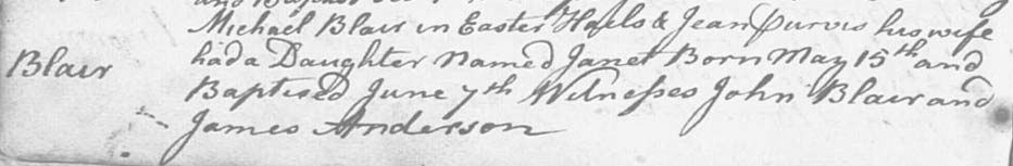 Blair daughter of Michael Blair & Jean Purves at Colinton (or Hailes)