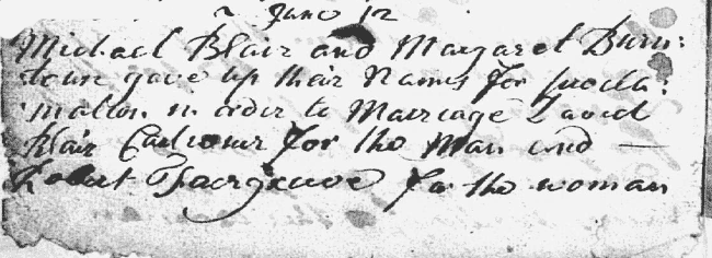 1742 Michael Blair and Margaret Burntoun get married on 12 June 1742 at Borthwick