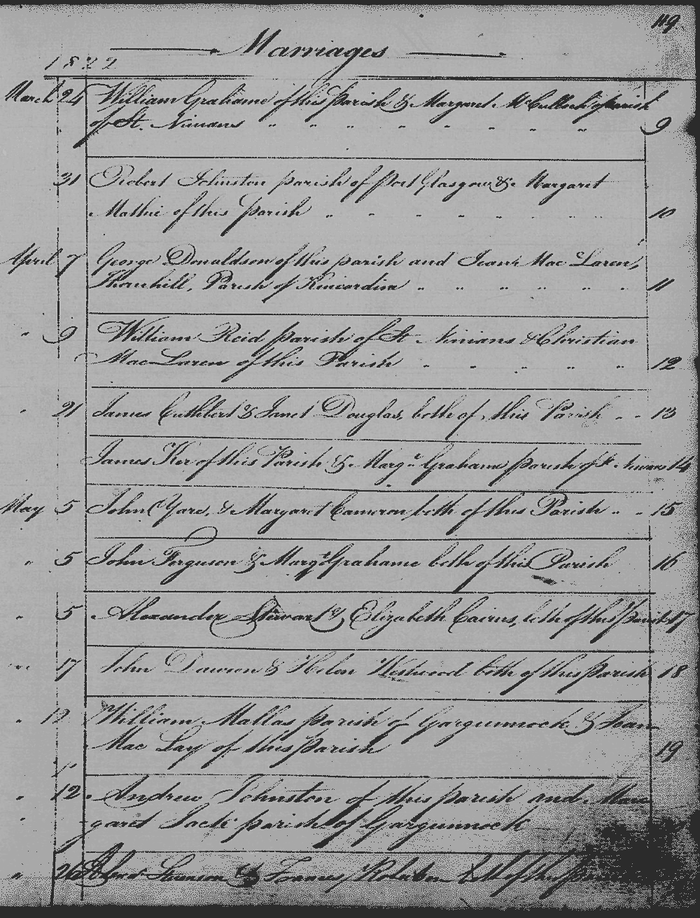 James Ker of this parish (Stirling) to Margaret Graham of St Ninians Parish. 21 April 1822
