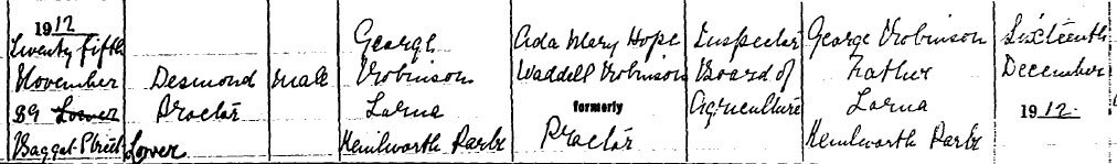 1912 Nov 25. Born Dublin. Son of George Robinson and Ada Proctor