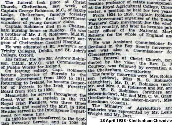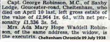 1938 Apr 10. George Robinson died at a Nursing Home in Cheltenham. I see my grandparents went to his funeral
