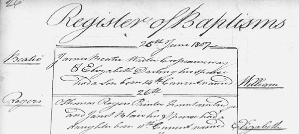 1807. Elizabeth Roger daughter of Thomas Roger & Janet Blair was born 11 June 1807 at 39 Fountainbridge, Edinburgh. Baptised 26 June 1807 St Cuthbert's Parish Church, Edinburgh
