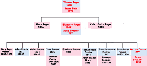 1892 she died 4 September 1892 in Edinburgh. Her death certificate records her as the widow of Adam Proctor, master plumber, at Main st, Bigger, Lanark. (it adds her normal residence is 4 East Broughton Place, Edinburgh). She was the daughter of Thomas Roger (printer, now deceased) and Janet Roger (nee Blair, now deceased). Reported by Elizabeth Proctor, daughter of 4 East Broughton Place, Edinburgh. It does not say what she was doing in Biggar.