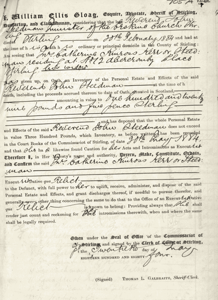 Will of Rev John Steedman b.1814