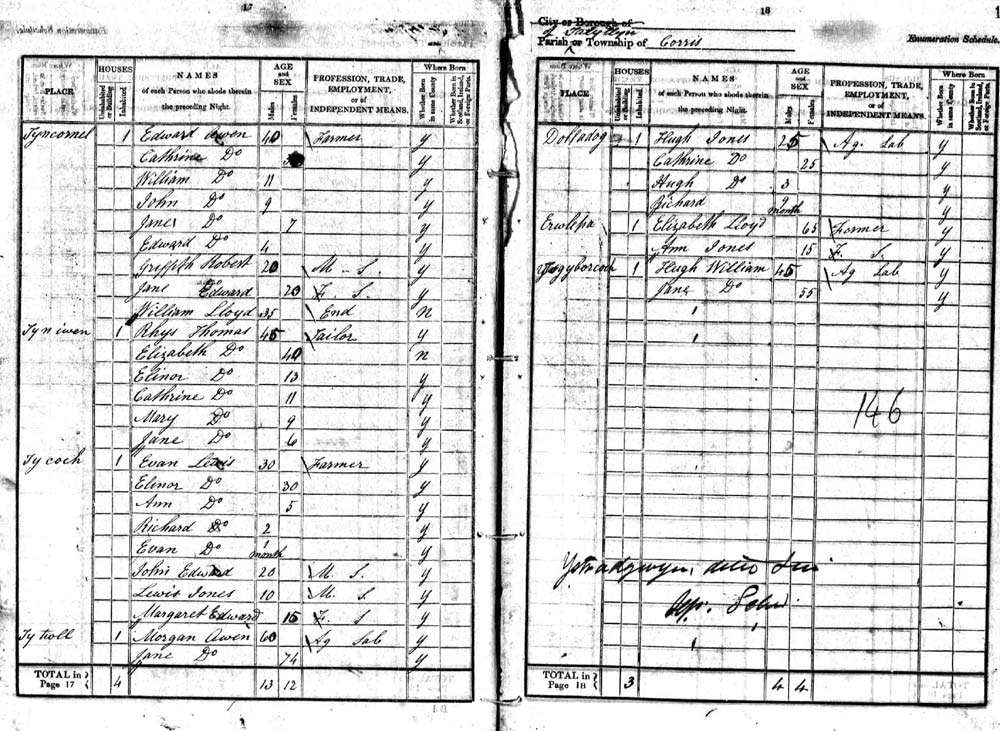 Rhys Thomas, age: 45 (Birth Year: abt 1796) , born: Merionethshire, Wales.