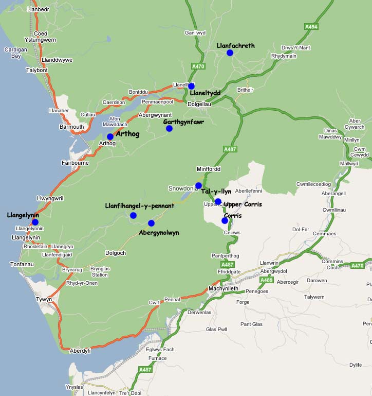 Living at Garthgynfawr in parish of Dongelly. . The parish includes also the townships of Brithdir-Isaf, Brithdir-Uwchaf, Cefnyr-Owen, Dolgledr, Dyffrydan, and Garthgynfawr; and extends along the estuary of the Maw. GARTHGYNFAWR, a township in the parish of Dolgellau, county Merioneth, North Wales, 2 miles S.W. of Dolgelly.