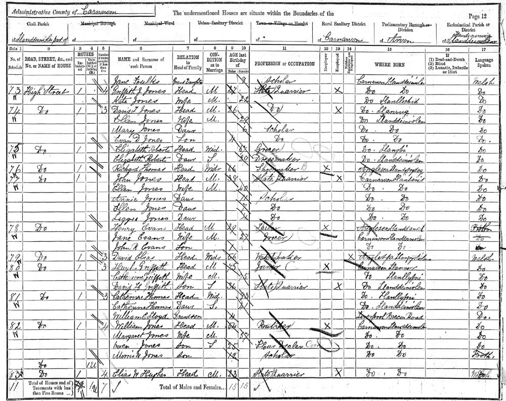 as a tailor, living at High Street, Llanddeiniolen