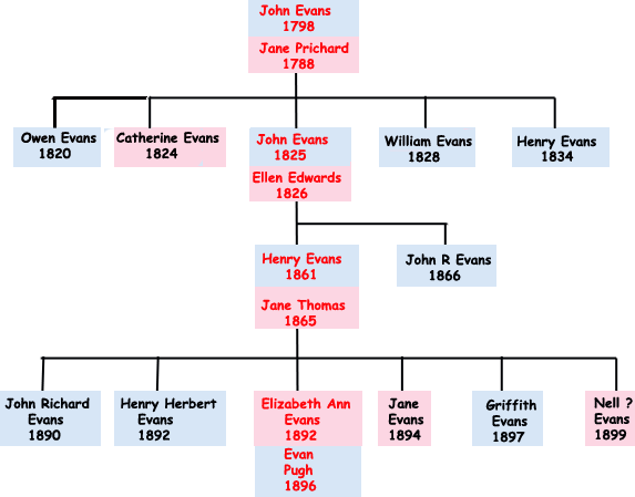 1899 Henry Evans wife Jane died at High Street, Ebenezer, (perhaps) in childbirth on March 29th 1899, however the death certificate records a form of TB. Emrys Pugh believes that the child, Nell, was sent away, maybe adopted. I have not been able to track down a birth cert