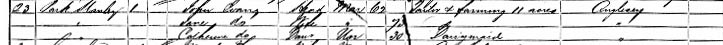 1861 census. Still living at Park Stanley, Llangefni with wife Jane and daughter Catherine (an unmarried dairymaid). John is given as a "tailor & farming of 11 acres"