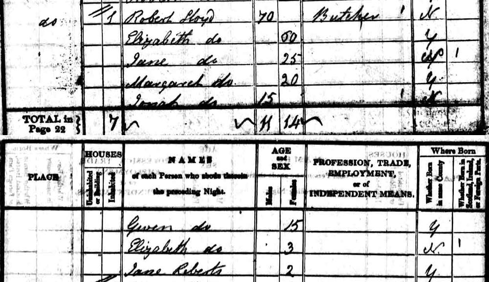 Living at Plase, Bala, in the household are:-