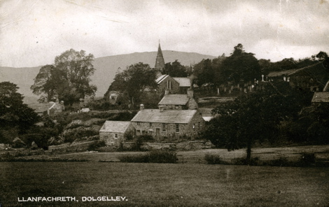 "LLANFACHRETH, a parish in the hundred of Talybont, county Merioneth, 3 miles N.E. of Dolgelly, its post town. It is situated in a hilly neighbourhood, watered by a tributary of the river Maw, and abounds with good pasturage. The parish includes the townships of Isafon and Uwchafon-Nannaw. Copper is obtained here. The village is situated at the N. foot of Moel Orthrwm, in the valley of the Mawddach. Here is a romantic pathway called the Precipice Walk. The living is a perpetual curacy in the diocese of Bangor, value £92. The church is dedicated to St. Mackreth, and was restored partly at the expense of the patron in 1820. The Calvinistic Methodists have two chapels. The parochial charities produce about £9 per annum. This was the birth-place of Rice Jones, the Welsh bard. Fairs are held on the 22nd April, 30th June, 15th August, and 23rd October." [From The National Gazetteer of Great Britain and Ireland (1868)