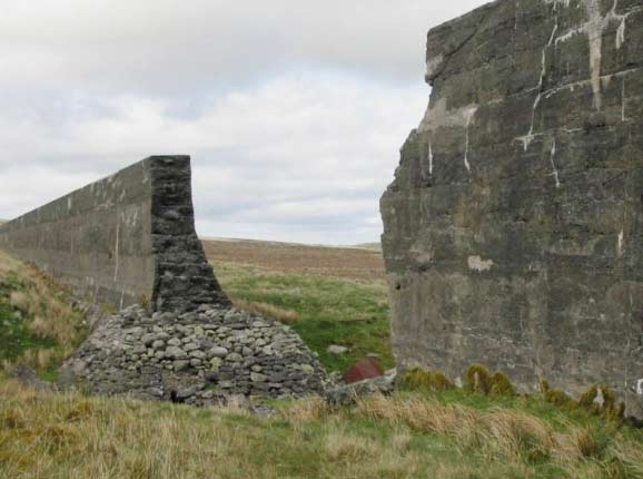 A dam was built to raise the level of Lake Eigiau by 6 metres from where it flowed to the edge of the valley overlooking the village more than 300 metres below. The dam was constructed in the normal way for the period, with deep concrete foundations, and a concrete and stone wall built above. The foundations where not however excavated down to the bedrock. The waters from here were allowed under a controlled flow, down to a second dam built in 1922 at Llyn Coedty. From there, a single steel pipeline delivered the water to the power station, on the same site as the aluminium works.