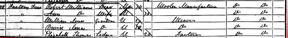1851 census. Probably this is her entry. For what its worth, there is a William Jones, grandson of the head of household, age 27 living there too.