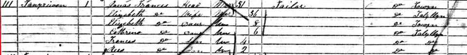 1861 census - She is married to Jonas Francis (who has been married before, and is listed in 1841 as married to Mary Plus their 1 year old daughter Jane)