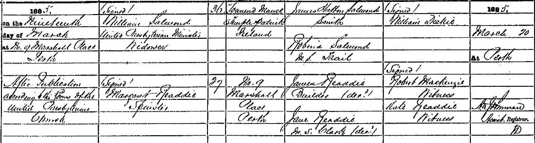 1885 Mar 19 . Married in Perth. He is a Presbyterian Minister at the Manse, Templepatrick