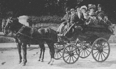 were drawn by horse, and outside cars, on which the driver sat on what was